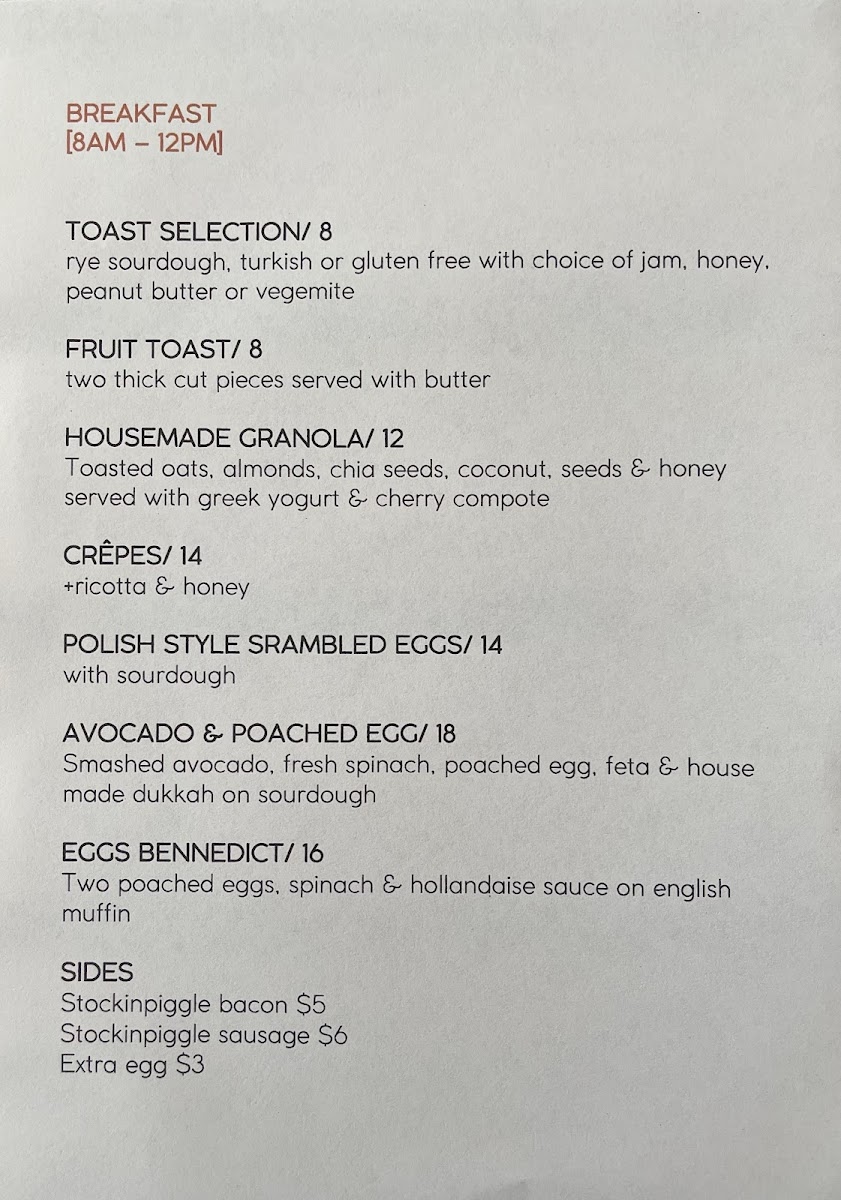 Rye sourdough, turkish or GF w/ choice of jam, honey, peanut butter or vegemite